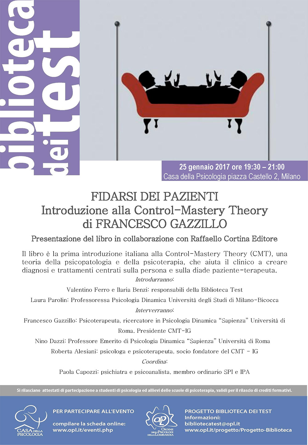 Mercoledì 25 gennaio 2017 ci sarà la presentazione dell’ultimo libro di Francesco Gazzillo “Fidarsi dei pazienti – Un’introduzione alla Control Mastery Theory”.